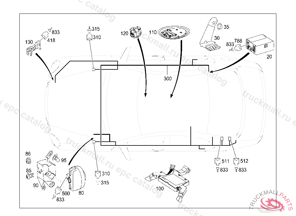 WIRING HARNESS ATA TIRE PRESSURE MONITOR AND AIRMATIC DC OR SEMIACTIVE AIR SUSPENSION, A 03833120050630806