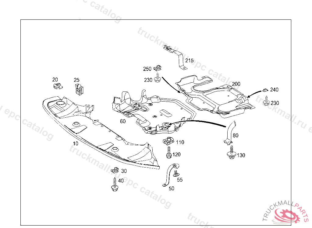 UNDERBODY PROTECTION CENTRAL, FIRST EXHAUST STOCK OF OLD PARTS UP TO IDENT NO. B 06005020060930, Replaced By: A2115240501