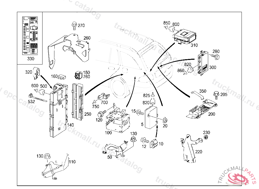 BRACKET FASTENING, CONTROL MODULES IN TRUNK LOWER LEFT, A 14034120080328809