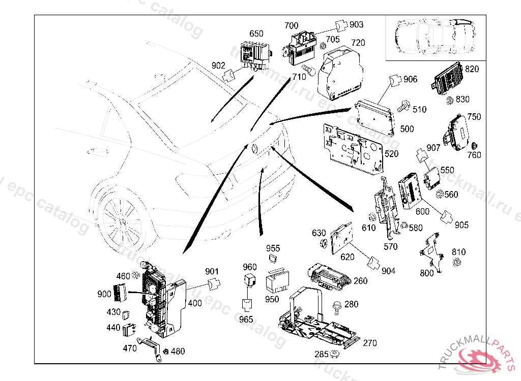 BRACKET CONTROL UNIT IN TRUNK, FIRST EXHAUST STOCK OF OLD PARTS UP TO IDENT NO. A 62094720120228, Replaced By: A2126400351