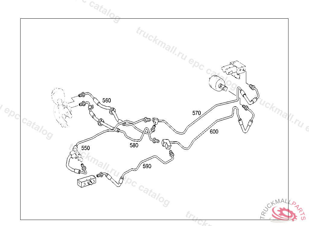 HOSE VALVE BLOCK, FRONT LEFT, TO DISTRIBUTOR FITTING, Replaced By: A2209978282