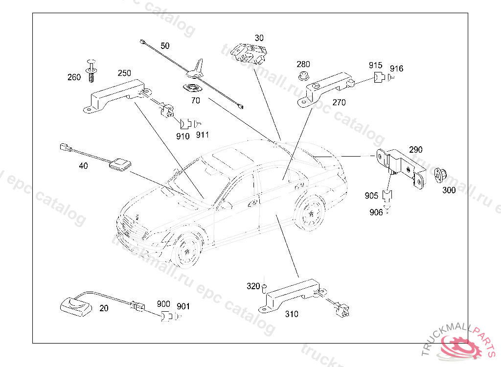 ANTENNA AT TRUNK LID, CENTER REAR, 9999QFT207L9000 COLORLESS, Replaced By: A2219056400