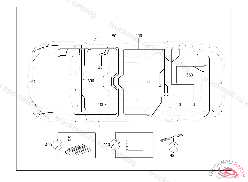 WIRING HARNESS CAN DISTRIBUTOR, B-GATE AND FRAME FLOOR ASSEMBLY AT RIGHT X30/28, X30/33, B48/6, M16/34