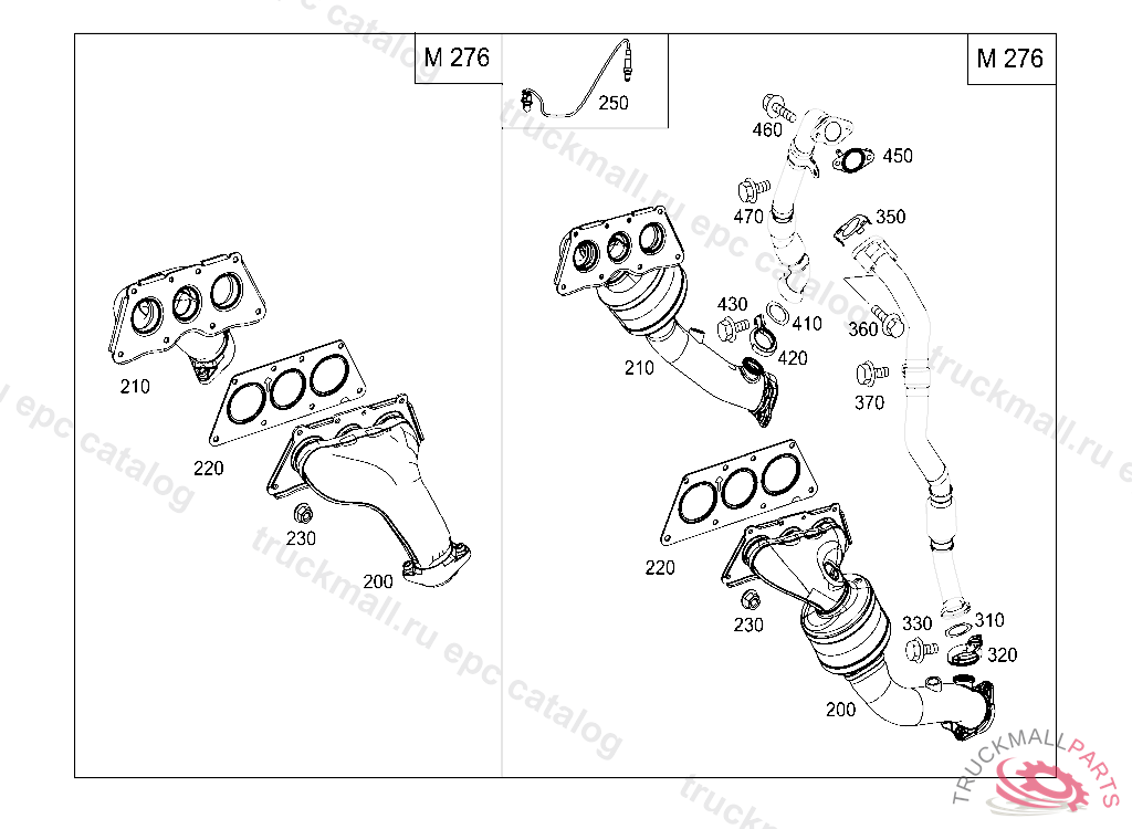 EXHAUST ELBOW LEFT, FIRST EXHAUST STOCK OF OLD PARTS UP TO IDENT NO. A 20130108 F 02662920131129 PART IS ONLY OR ALSO SUPPLIED AS RECONDITIONED PART, Replaced By: A2761405309