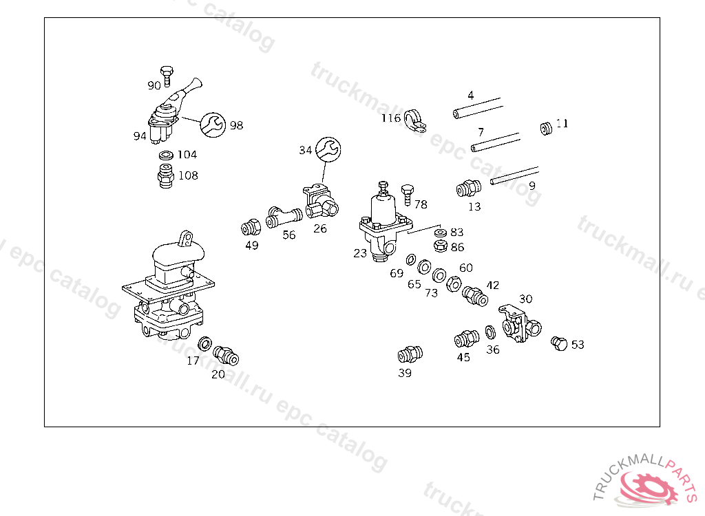 7. 001 COMPRESSED AIR LINES USED FOR PARKING- AND BUS-STOP BRAKE VALVE