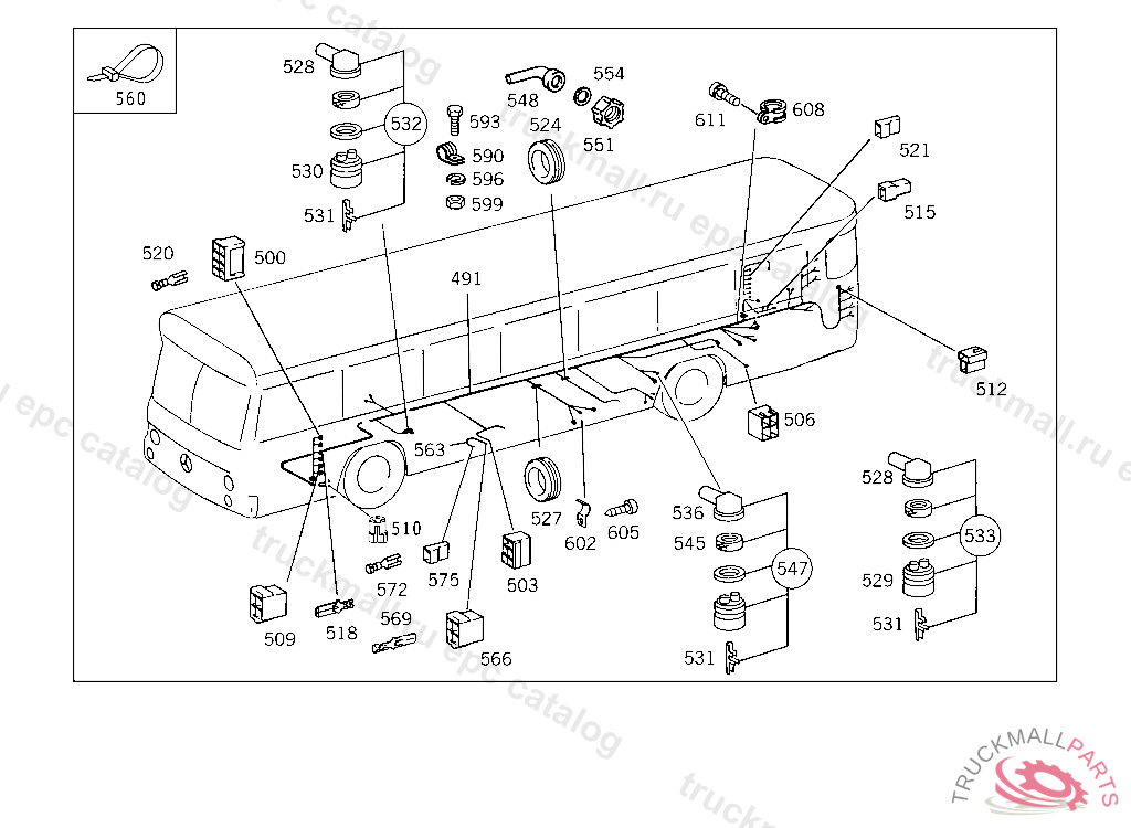 CLAMP WIRE CABLE TO CAB, FOR USE WITH SHORT VERSION OF MERCEDES-BENZ CAB