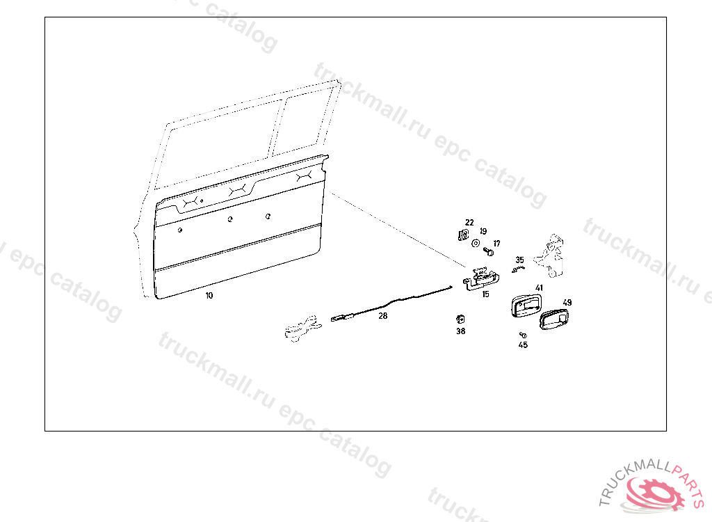 PANELLING RIGHT REAR DOOR, UP TO CHASSIS: 114.017 038672 115.112 089093 STATE COLOR NUMBER WHEN ORDERING