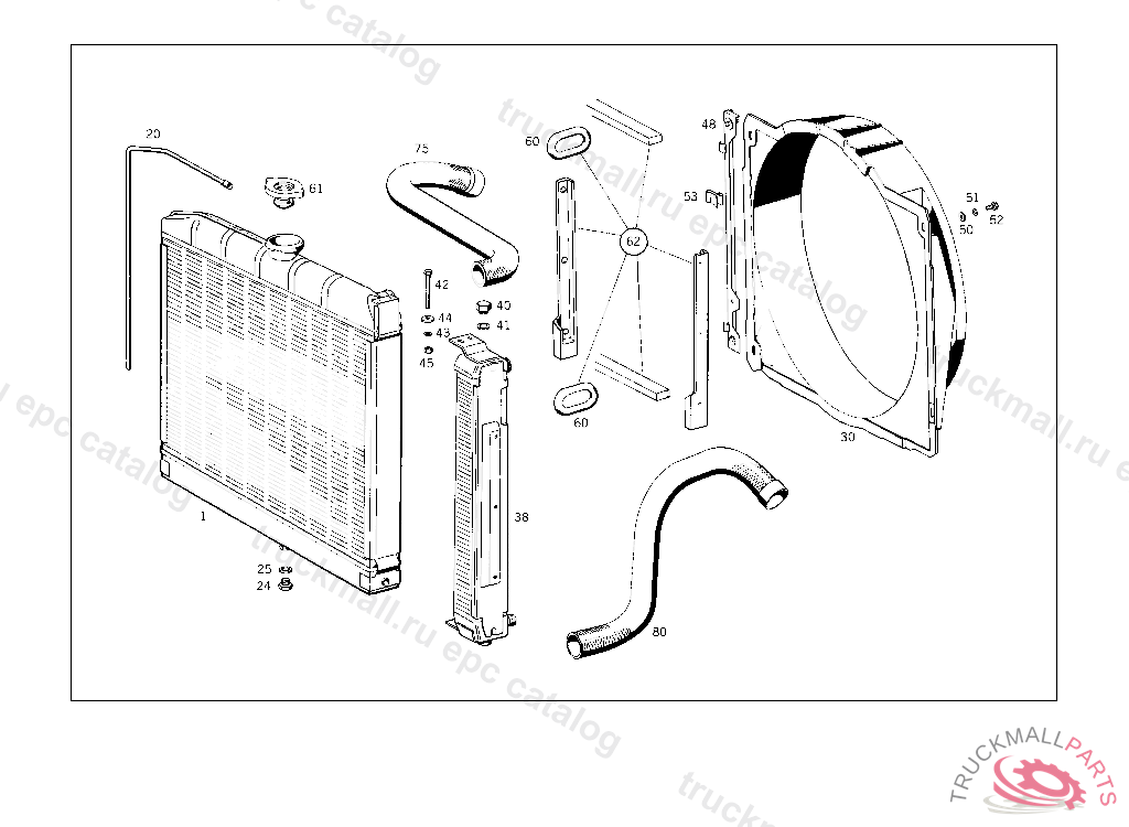 RADIATOR , UP TO CHASSIS 029695 EXCEPT FOR: 029039,029358,029361,029367,029369,029371,029373,029375,029376,029378,029380,029381,029383,029385- 029389,029391,029392,029395,029397,029399,029400,029551,029552,029554,029555,029558-029571,029574, 029575,029577,029580-029583,029586,029587,029590,029592,029593,029596,029602,029603,029606-029608, 029612,029618-029621,029624,029626-029628,029633-029637,029639-029642,029644,029645,029647,029650, 029652-029656,029658-029672,029674-029677,029679-029694.