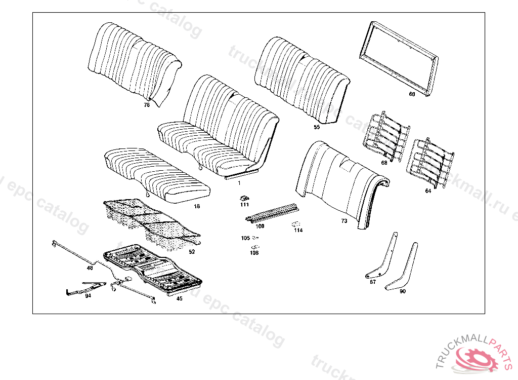 SEAT CUSHION LESS COVER COMPLETE,BUT LESS COVER, FROM CHASSIS:114.010 027362 114.015,017 028540 115.010 029729 115.015 027341 115.110,112 065704