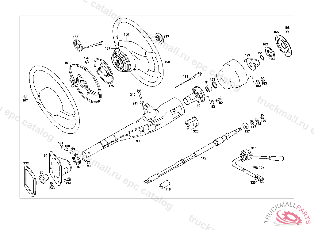 STEERING NUT , UP TO CHASSIS: 015:10/50,12/52 310259 015:20/60,22/62 309324 005,017:10/50,12/52 084434 005,017:20/60,22/62 083599 110:10/50,12/52 466359 110:20/60,22/62 460169 114:10/50,12/52 050055 114:20/60,22/62 049120 115:10/50,12/52 348094 115:20/60,22/62 346554 105,107,108,117,119:10/50,12/52 125697 105,107,108,117,119:20/60,22/62 124530 FROM CHASSIS,SEE UNIT SPARE PARTS LIST