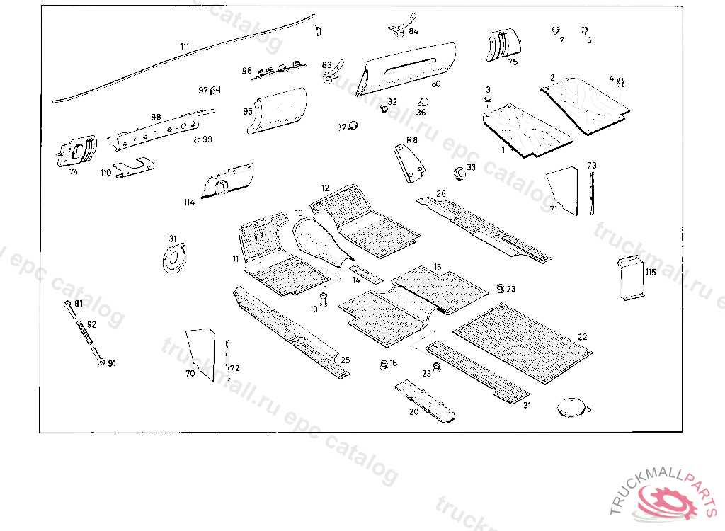 RUBBER MAT, RIGHT FOR DRIVER'S FLOOR, WHEN PLACING ORDERS: COLOR AND CHASSIS NO. SHOULD BE INDICATED
