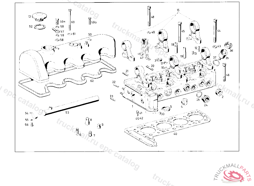 CYLINDER HEAD WITH CRANKSHAFT BEARINGS AND STUD BOLTS WITHOUT PRECOMBUSTION CHAMBER, Replaced By: A6210104320