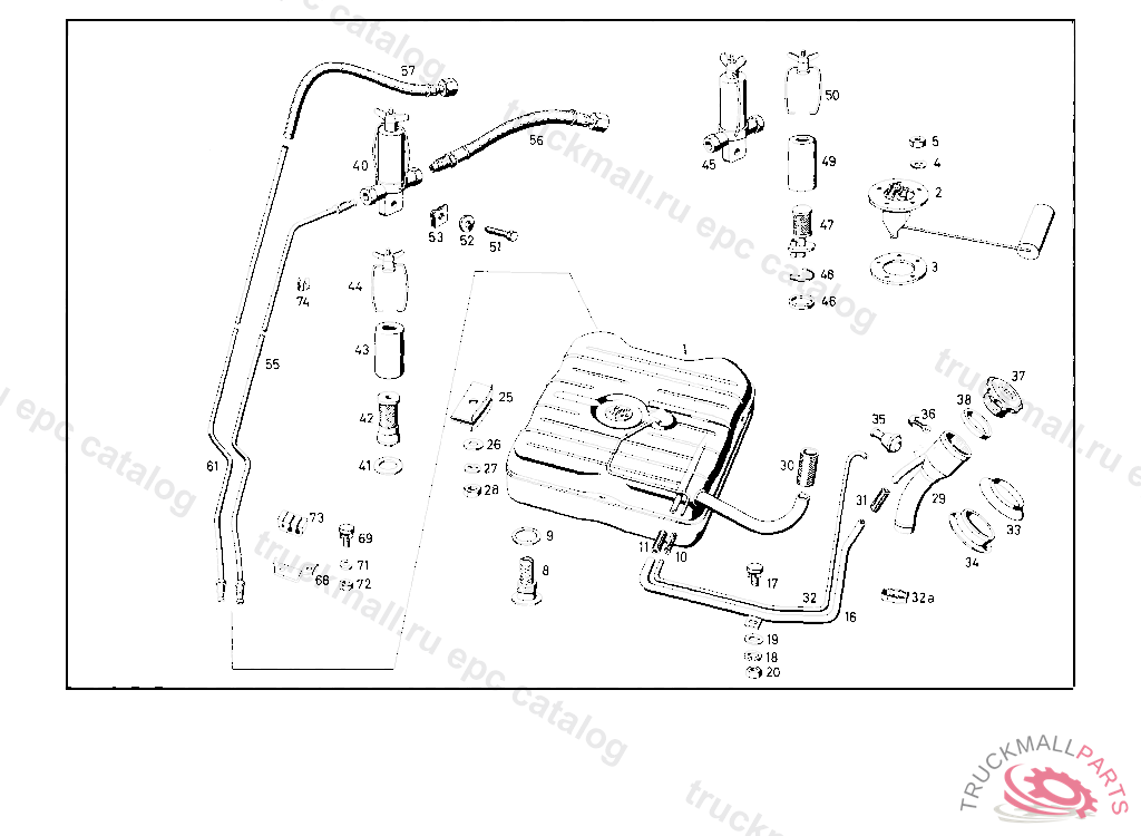 FUEL TANK WITH SCREW PLUG. FUEL TANK CAPACITY 56 LITERS