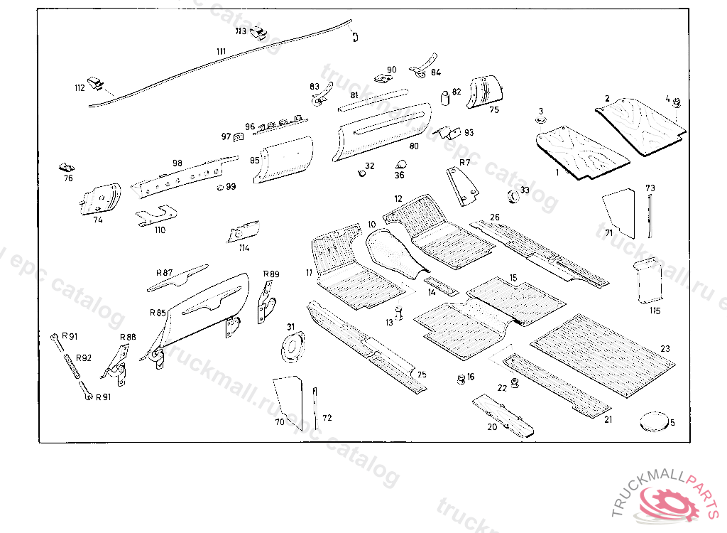 RUBBER MATE IN LUGGAGE ROOM, RIGHT EXPORT, SPECIAL REQUEST, FOR TIRES 6.40 - 15 UP TO CHASSIS 8514603