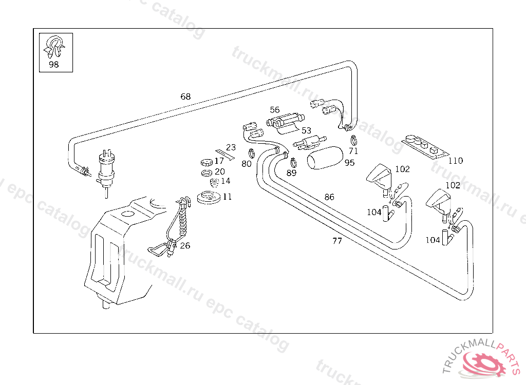 CHECK VALVE (CHECK VALVE),WINDSHIELD WASHER, 000 159697 003 078977 007 064070 083 004734 086 003596 093 004546 102,103 149491 105 164442 183 008116 190 011709