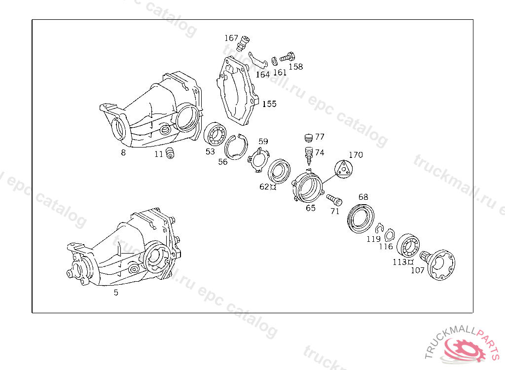 SPACER WASHER AS REQUIRED 0.8 MM, REAR AXLE HOUSING WITH DIFFERENTIAL,LESS SIDE BEARING CABS 003 103239 007 087551 086 007106 093 008992 102,103 240183 105 231729 183 015395 190 021957 193 002093 200 027295 280 000777 283 003632