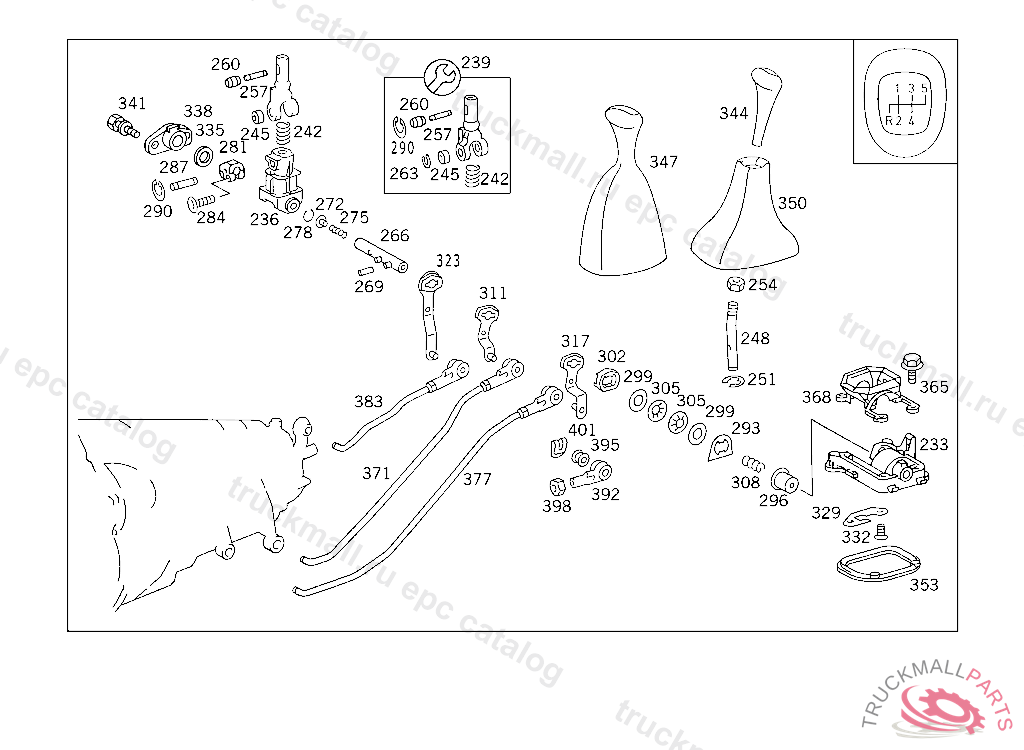 FLOOR SHIFT MECHANISM FOUR-GATE SHIFT, FROM 1.88 FOUR-GATE SHIFT A 427031 F 453773