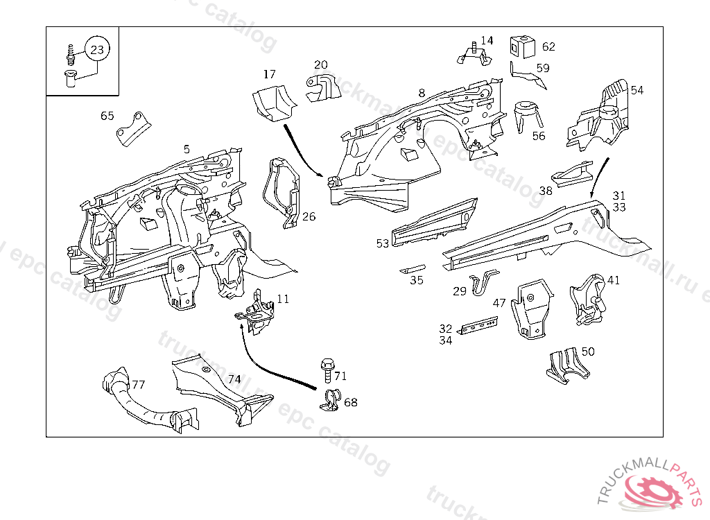 WHEELHOUSE , FIRST EXHAUST STOCK OF OLD PARTS UP TO IDENT NO. F 114541, Replaced By: A1246205961