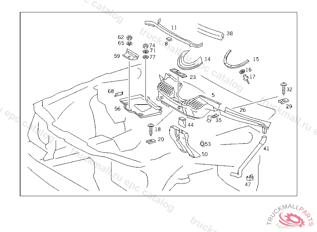COVERING AT CROSS MEMBER BELOW WINDSHIELD,RIGHT, UP TO IDENT NO.: F 256526 J 011149