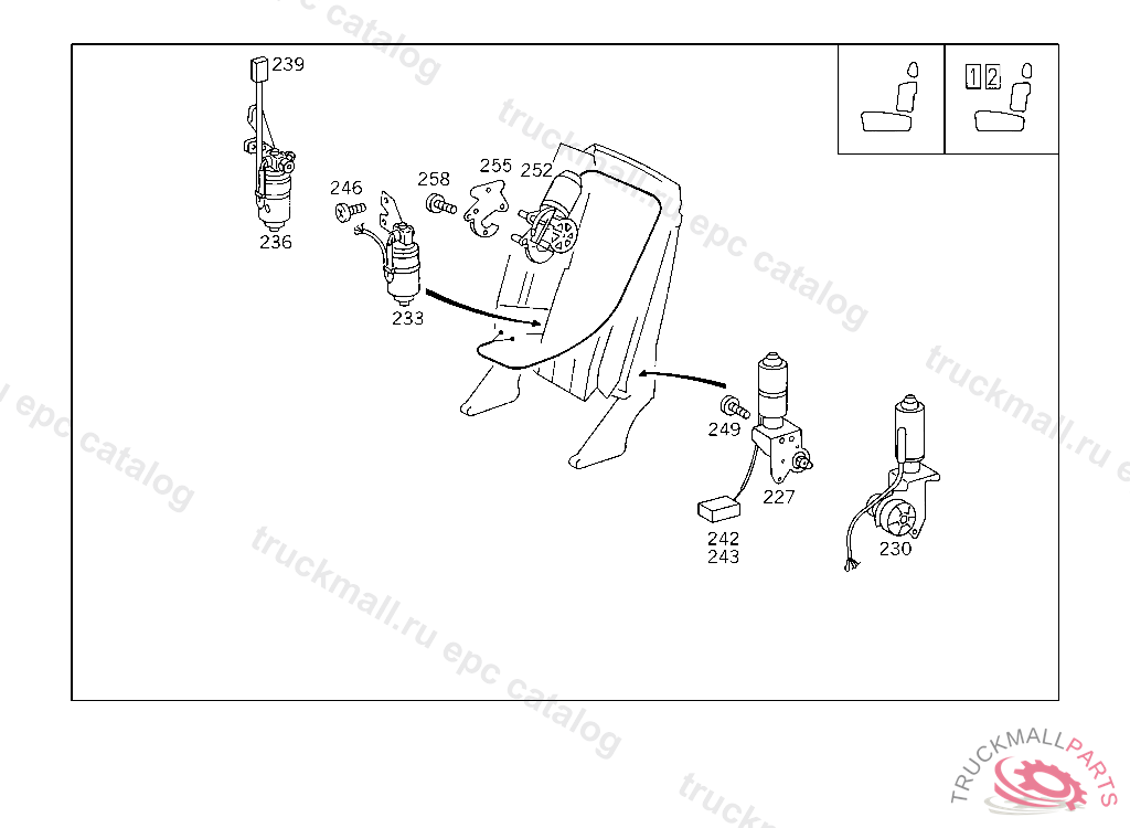 PIN BUSHING HOUSING BACKREST ADJUSTMENT MOTOR, ELECTRIC SEAT ADJUSTER WITH MEMORY