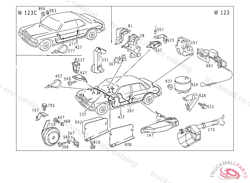 LOCK RIGHT DOOR LOCK, 126.021 024130 ALSO INSTALLED ON 024568-024856 126.022,023 082490 ALSO INSTALLED ON 085384-086403 126.032,033 042921 ALSO INSTALLED ON 043448-043816 126.036,037 031317 ALSO INSTALLED ON 032054-032495 126.120 042492 ALSO INSTALLED ON 043412-044100 FOR THE NEW PART NO.,SEE STANDARD VERSION
