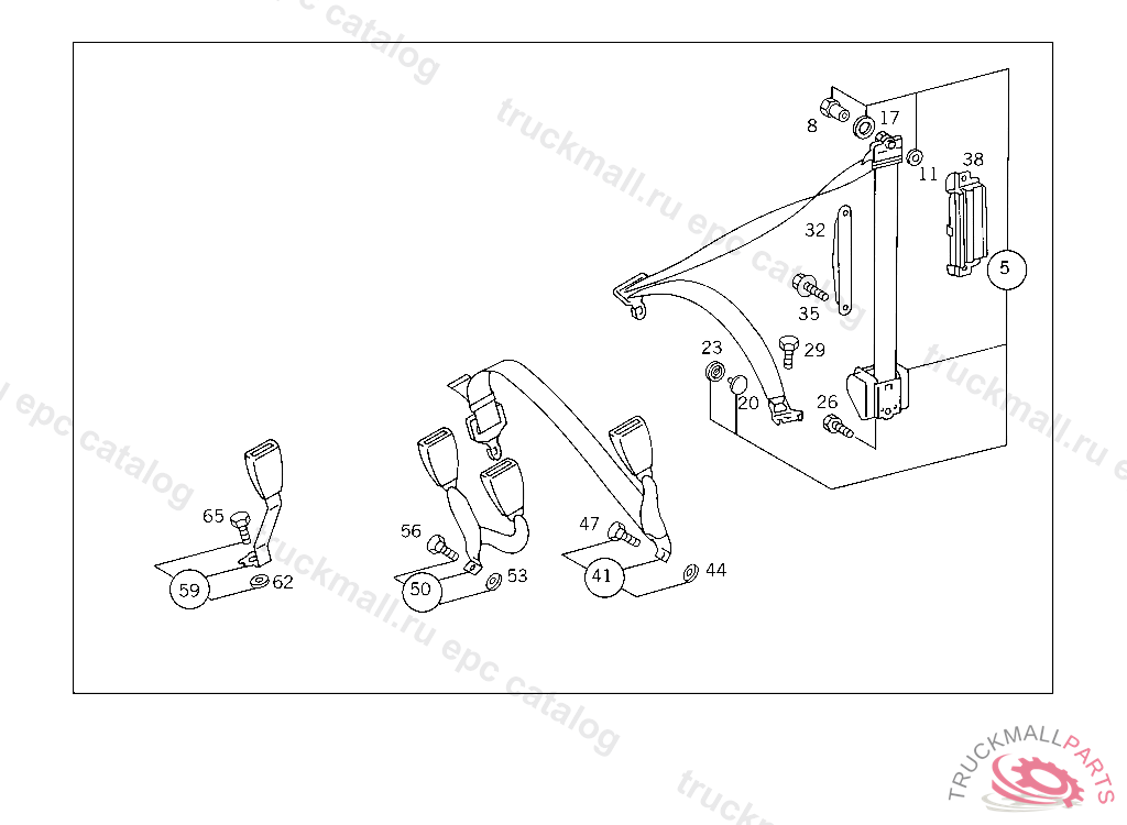 FASTENER DOUBLE, USED FOR REAR SEAT SAFETY BELTS,IN CENTER AND OUTSIDE RIGHT, A 526781 F 575403