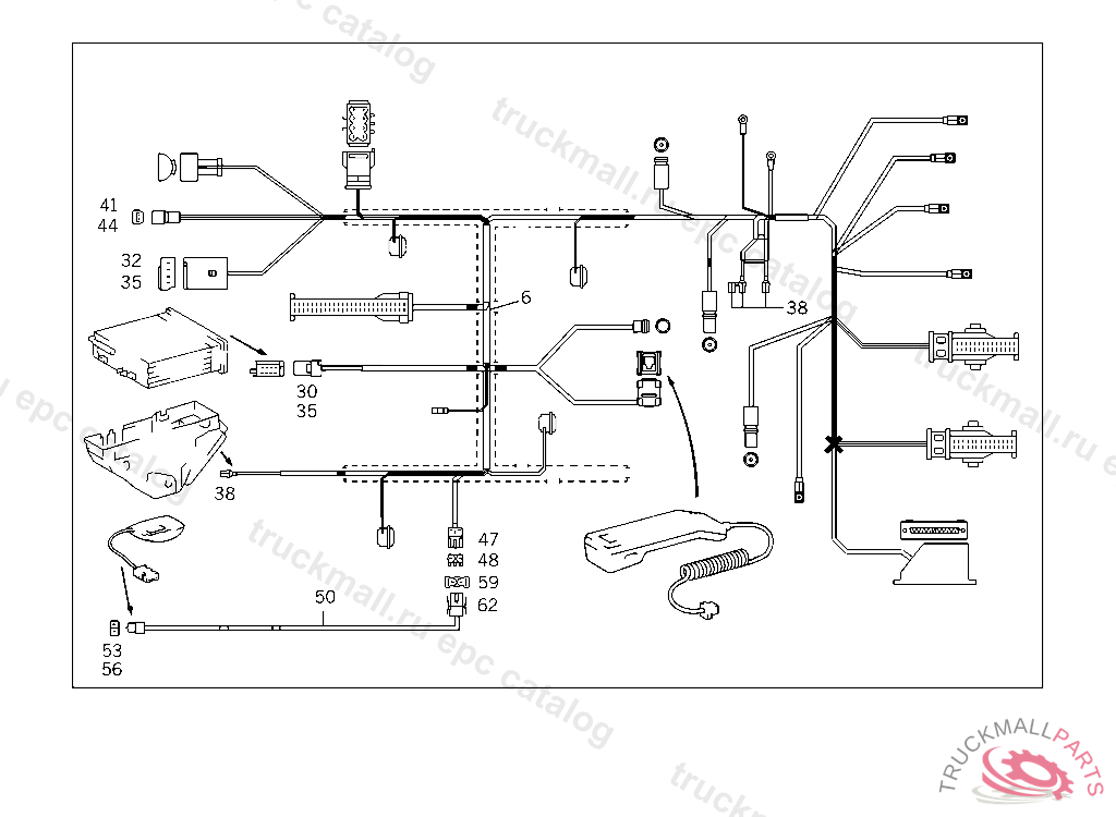 CABLE HARNESS CAR PHONE,MOBILE VERSION, A 653729 F 758208 EXCEPT CODE 808 ALSO INSTALLED IN VEHICLE TO A 653728, F 758207 WITH CODE 809