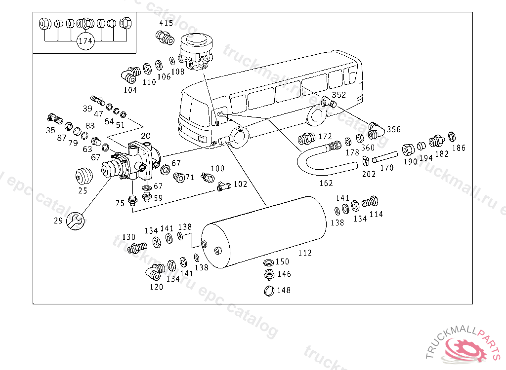 REPAIR KIT COMPRESSED AIR CYLINDER TO 001 431 35 05,001 431 94 05,WABCO, 620.415 UP TO CHASSIS 5 014668 620.416 UP TO CHASSIS 5 000515 620.417 UP TO CHASSIS 4 972023