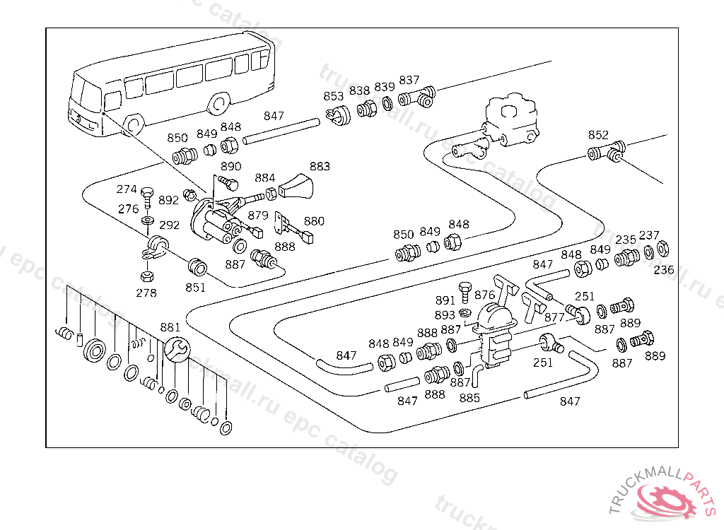 REPAIR KITTO 001 430 58 81/59 81,WABCO, WITH HAND BRAKE VALVE ON ENGINE TUNNEL, FROM IDENT NO. SEE MF 26032