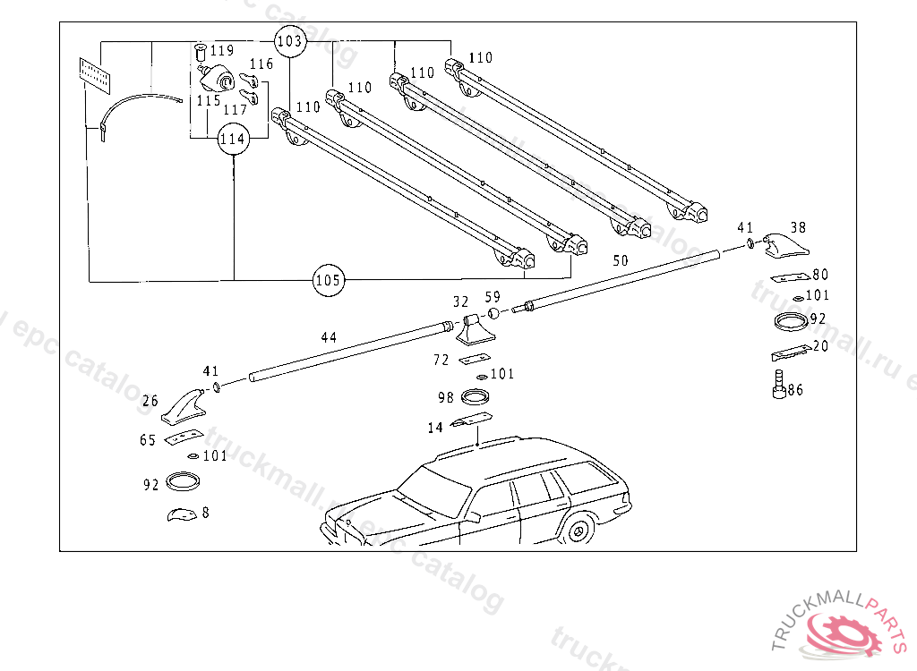 REINFORCEMENT ROOF RAILING FIXTURE,CENTRAL, 083 001657 086 001279 093 001162 183 002791 190 002814 UP TO CHASSIS SEE SA 56309/01