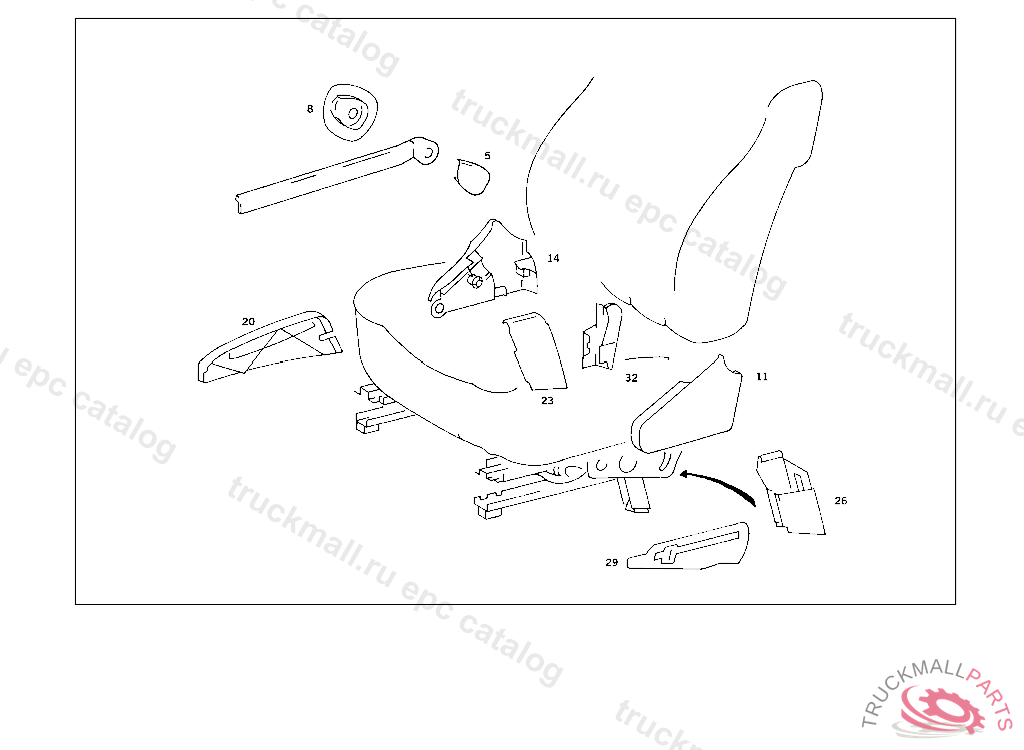 COVERING RIGHT RECLINING SEAT FITTING,RIGHT SEAT,NO.9051I NO.5076I NO.8316I NO.8326I NO.8412I NO.6101 AI NO.3112I NO.7101I I NO.6122 BI