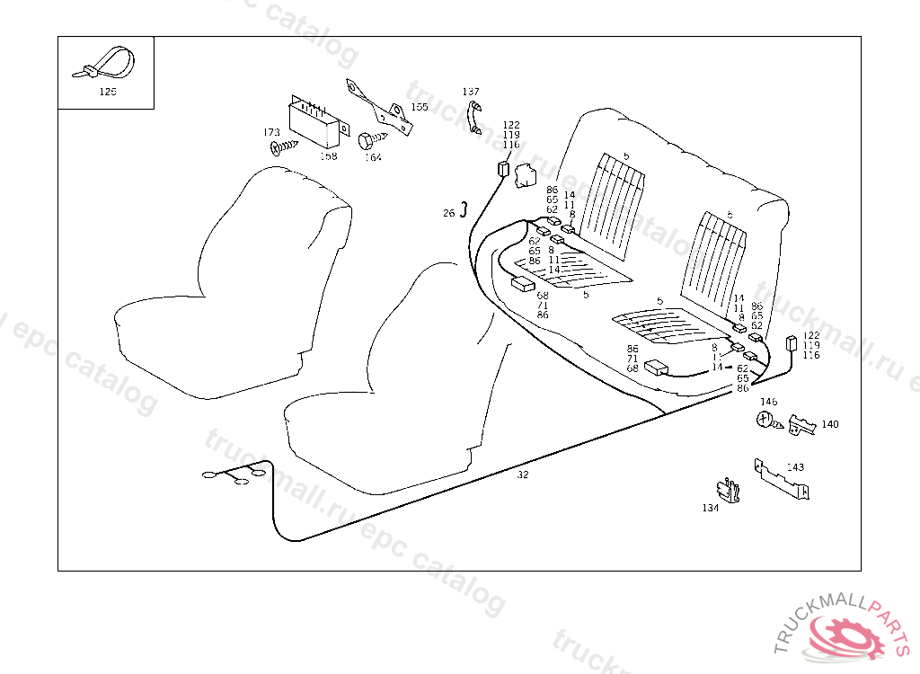 CABLE HARNESS REAR SEAT, 126.021 027853 022,023 095774 032,033 048981 036,037 037125 043 008027 044 007398 120 051147