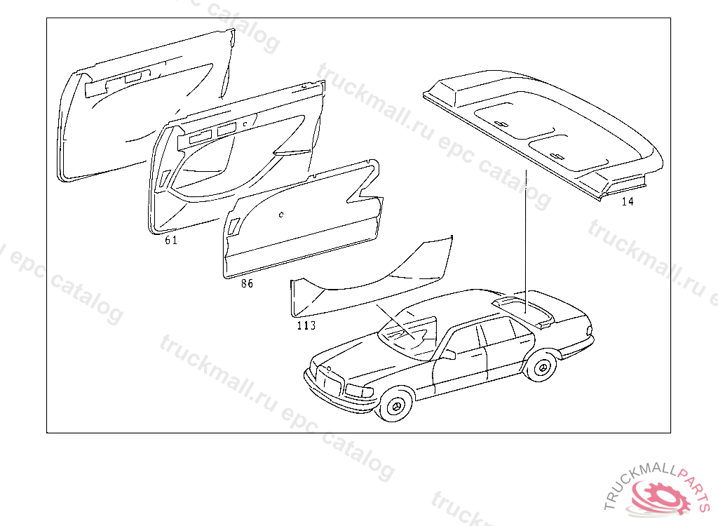PANELLING LEFT FRONT DOOR, CENTRAL, WITH MB-TEX & LEATHER TRIM,NO.9045I NO.5070I NO.8310I NO.8320I NO.8411I NO.6093 AI NO.3111I NO.7095I I NO.6121 BI I