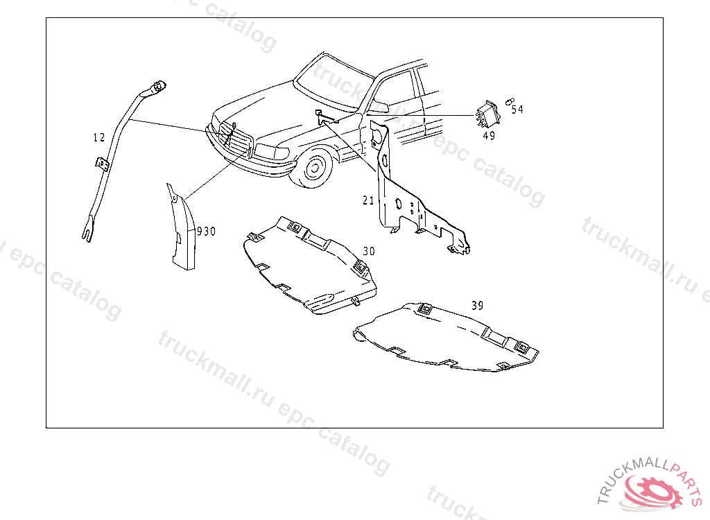 STRUT AUXILIARY FAN WITH BRACKET TO FRONT CROSS MEMBER, UP TO CHASSIS: 126.120 A 036919 FROM CHASSIS,SEE STANDARD MICROFICHE