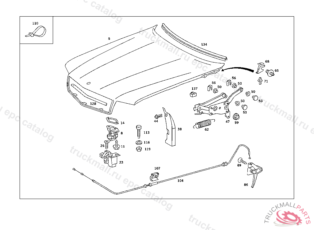 CLIP ENGINE HOOD RELEASE CABLE TO WHEEL ARCH PANEL