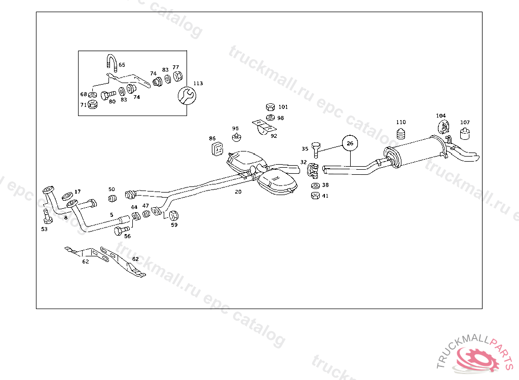 EXHAUST MUFFLER WITH PIPE ,A 004265, Replaced By: A1264902715, +001A1149870139