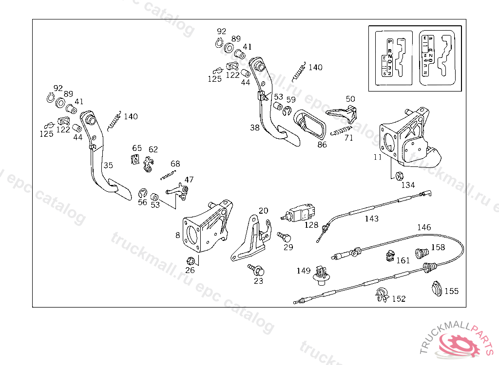 LEVER PARKING INTERLOCK MECHANISM DEPENDING ON BRAKE PEDAL, A 290167 EXCEPT CODE 805 ALSO INSTALLED IN VEHICLE TO A 290166 WITH CODE 806