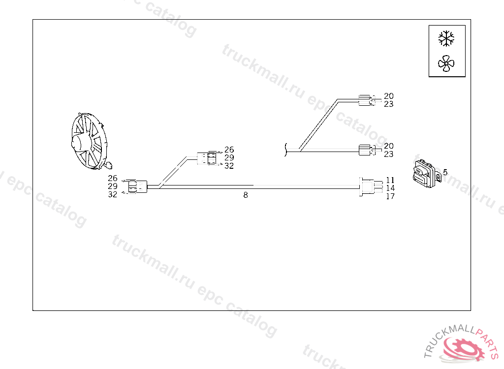 CABLE HARNESS AUXILIARY FAN, F 155734 EXCEPT CODE 808 ALSO INSTALLED IN VEHICLE FROM F 155735 WITH CODE 807