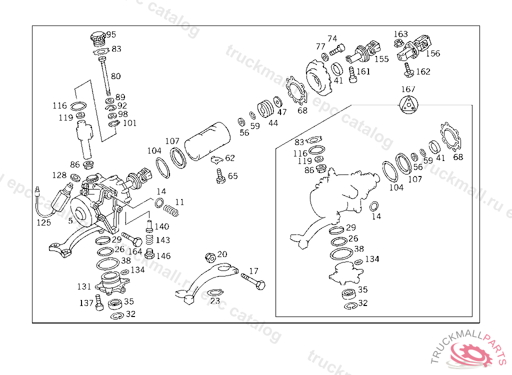 STEERING COUPLING , LESS PARAMETRIC STEERING 1 A 033659 2 A 031993 WITH PARAMETRIC STEERING A 033950A 166259