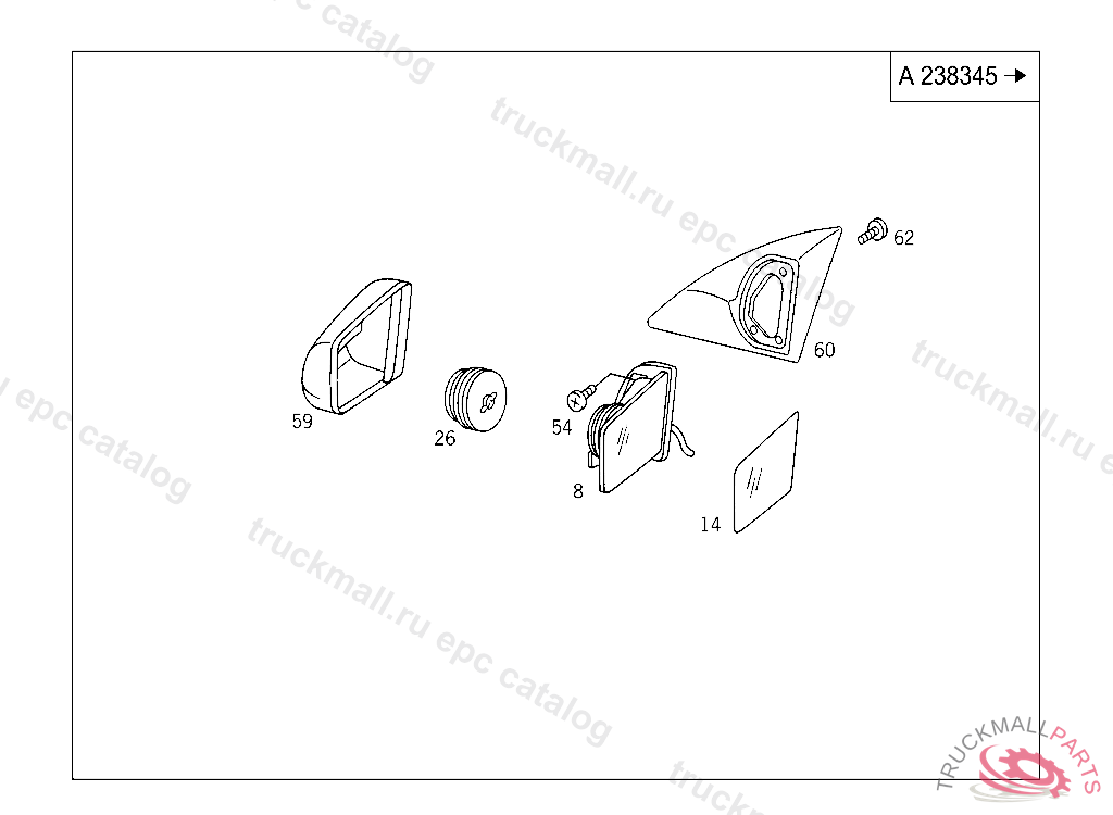 MIRROR WITHOUT CASING,RIGHT,A 273050 A 378019 EXCEPT CODE 808 ALSO INSTALLED IN VEHICLE FROM A 378020 WITH CODE 807