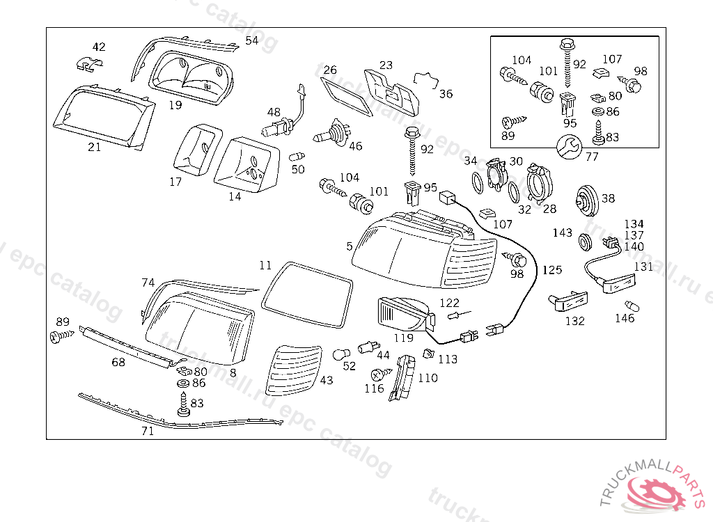HIGH BEAM HEADLAMP RIGHT AMG, ONLY REPLACEABLE BY PAIRS A 192208 EXCEPT FOR A 159651 - A 192207 WITH CODE 856 AUSTRALIA UP TO END OF MODELYEAR 94