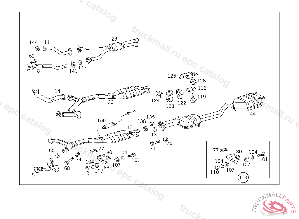 EXHAUST MUFFLER WITH PIPE , FIRST EXHAUST STOCK OF OLD PARTS UP TO IDENT NO. A 306622, Replaced By: A1404902921