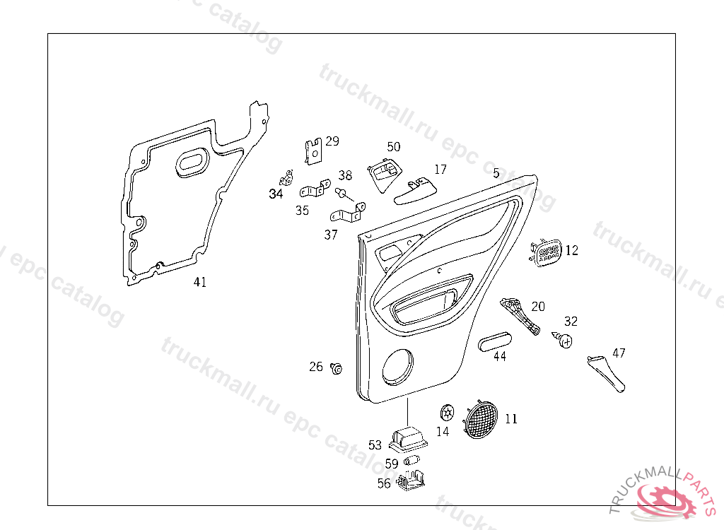 PANELLING RIGHT REAR DOOR, USED WITH LEATHER TRIM,.......I .......I NO.7D44 I .......I .......I .......I .......I .......I .......I .......I