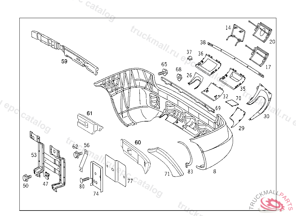 REAR BUMPER FACE BAR , Replaced By: A1638804771