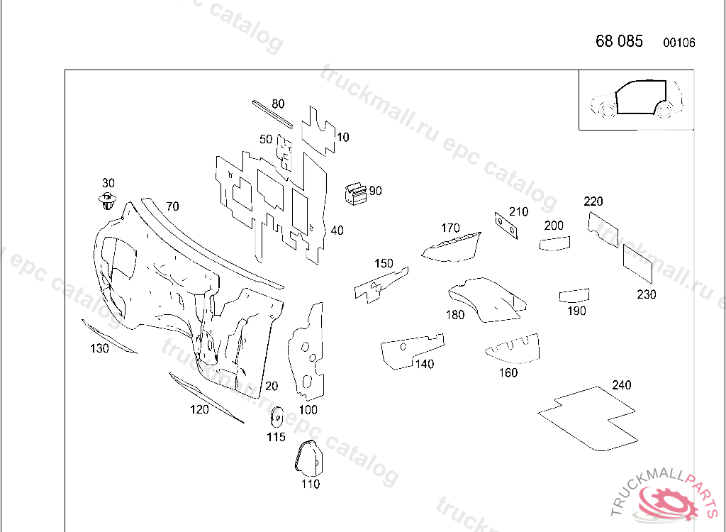 INSULATION TRANSMISSION TUNNEL, RIGHT, FIRST EXHAUST STOCK OF OLD PARTS UP TO IDENT NO. A 64598320100819, Replaced By: A1646823601