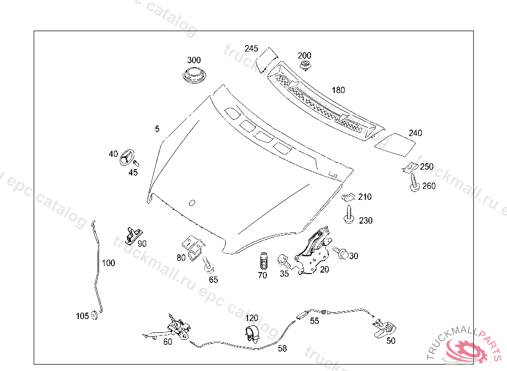 ENGINE HOOD CATCH LOWER PART, WITH CODE 551 UP TO CHASSIS NUMBER J625722 THE PART NUMBER 1X A 169 870 00 58 MUST ALSO BE ORDERED.