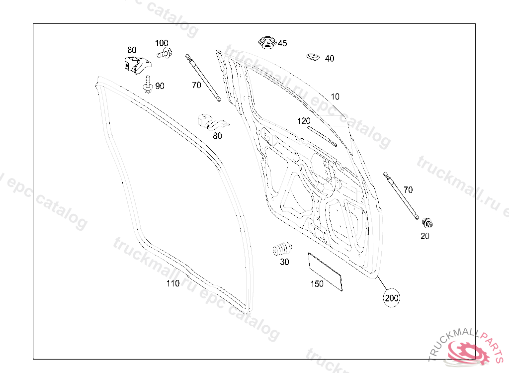 TS REAR DOOR WITH DOOR AT BODYSHELL, REAR, IN ADDITION THE HANDLE STRIP, THE GLASS MOUNTING SET AND MODEL DES. MUST BE ORDERED DEPENDING ON THE EQUIPMENT LINE/MODEL