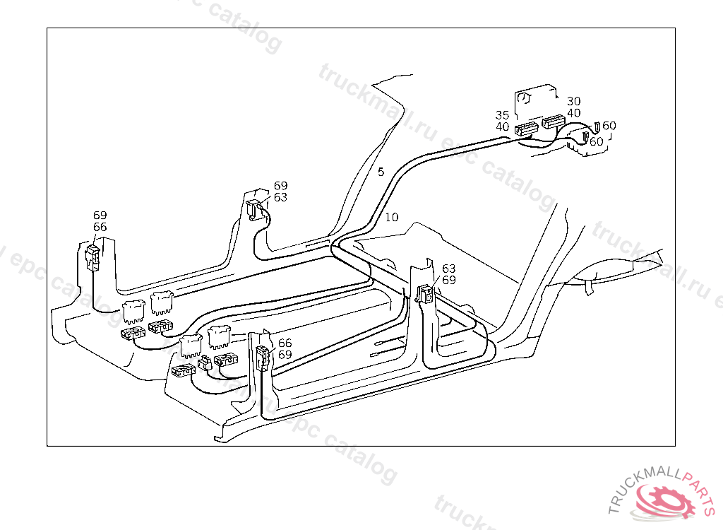 PLUG ENGINE CABLE HARNESS PLUG-CONNECTION TO FRAME MOUNTED CABLE HARNESS, A 698507 X 012425 EXCEPT CODE 809 ALSO INSTALLED IN VEHICLE FROM A 698508, X 012426 WITH CODE 808 EXCEPT A 654636, A 704016