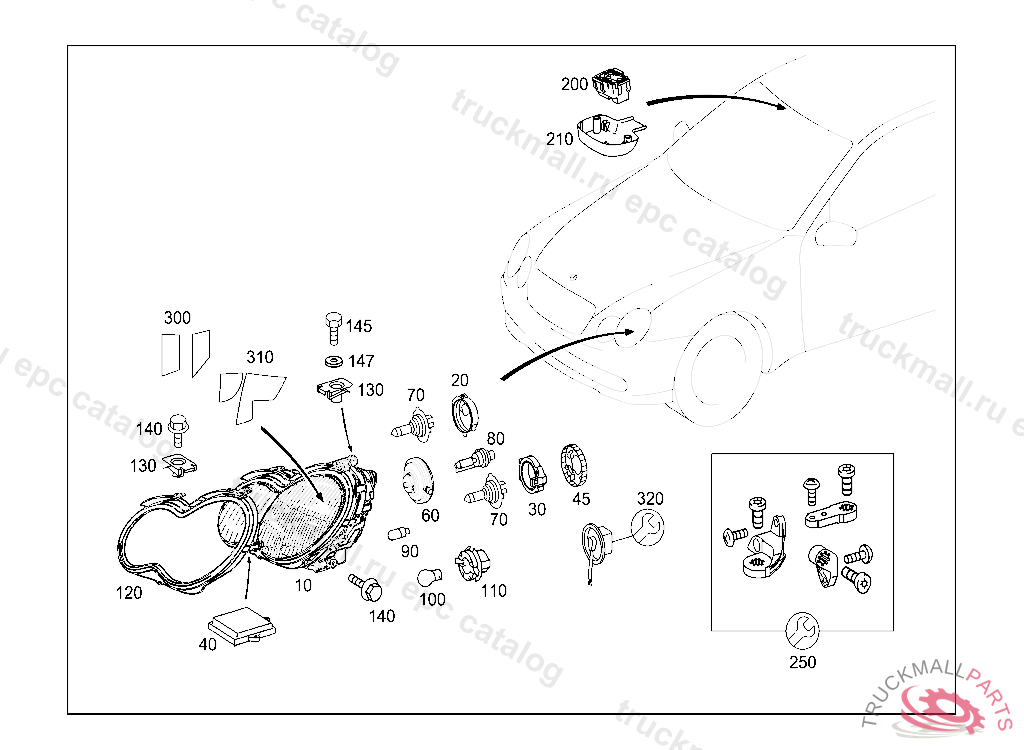 LIGHTING UNIT RIGHT, LEFT-HAND TRAFFIC, A 55589720030630804 A 97499920070630 E 06000020080801809
