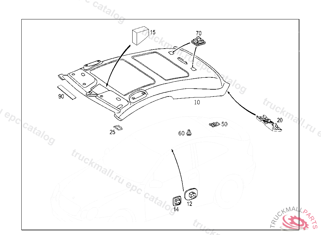 BRACKET REAR HEADLINER, E 02000020070101 A 97002220070531